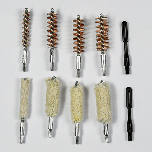 Ang handgun cleaning kit ay may kasamang 4 na laki (.22, 9mm, .40, .45cal.). Pinahiran ng telang OX