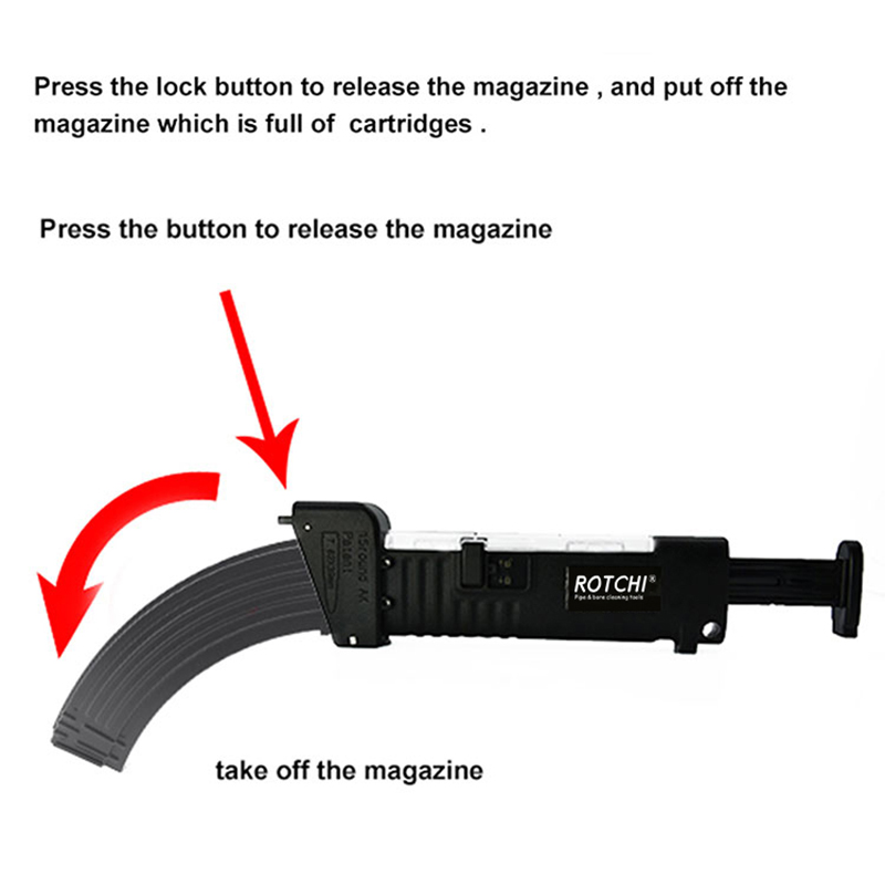 ● Punan ang mga cartridges na puno sa uka, i -install ang magazine sa katulad ng AK mekanikal na prinsipyo. Itulak ang pusher, madali ang pagpasok ng mga cartridges sa magazine.