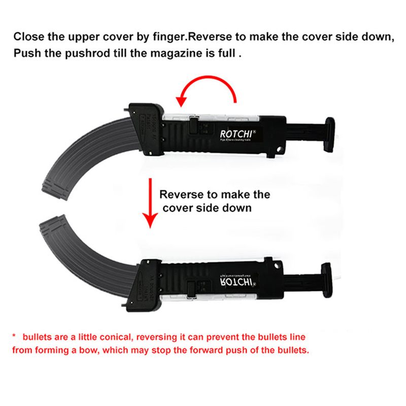 ● Ginamit upang mag -load ng 7.62x39mm cartridges sa AK magazine sa kapasidad 10/20/30 o mas malaki.